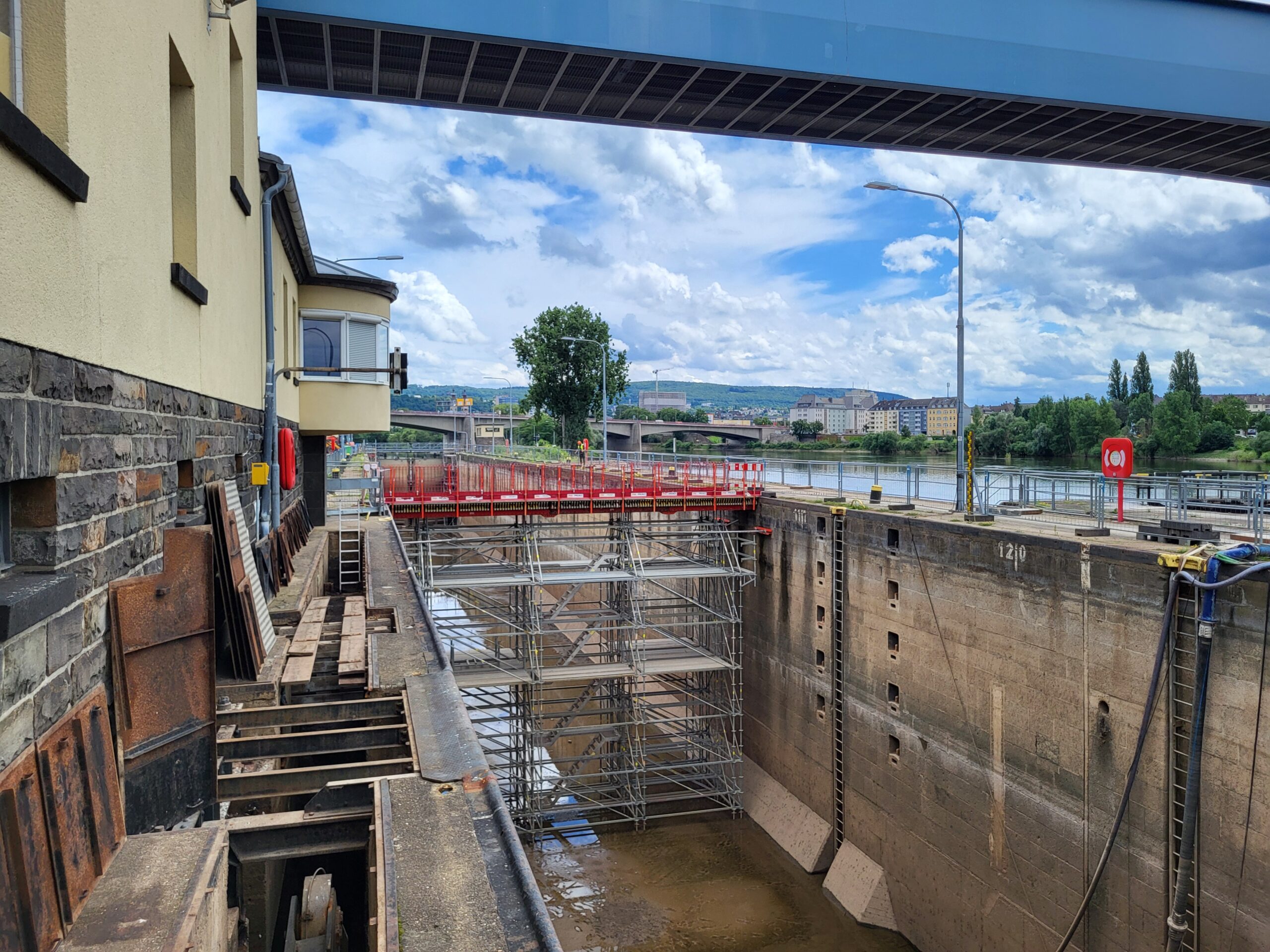 Schleuse Koblenz, Umbau rechte Kammer – Massivbauarbeiten zur Erneuerung der Antriebsgruben am Unterhaupt