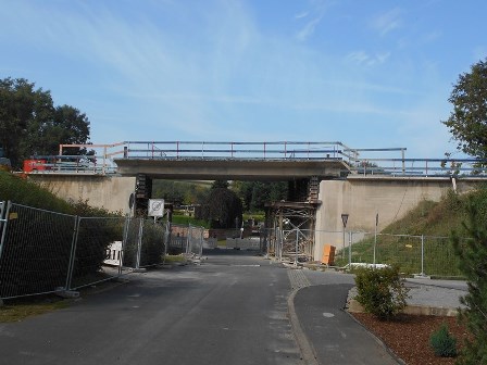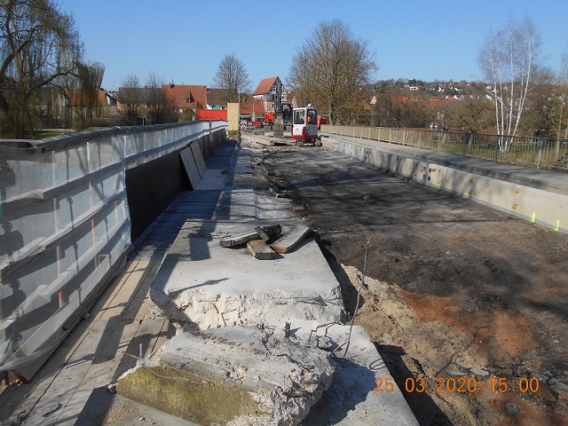 Im März 2020 haben die Arbeiten zur Instandsetzung der beiden Brücken begonnen. Zur Durchführung der Arbeiten sind die Brücken halbseitig für den Verkehr gesperrt. Bis Ende des Jahres werden der komplette Belag, einschl. Abdichtung, die Brückenkappen, das Geländer, sowie die Übergangskonstruktionen erneuert. Die Entwässerung wird neu geregelt. Die vorhandenen Schäden...